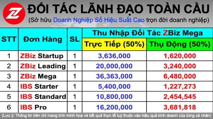 BAO GỒM TRONG DOANH NGHIỆP SỐ THÔNG MINH CỦA ĐỐI TÁC KINH DOANH HIỆU SUẤT CAO ZBIZ MEGA